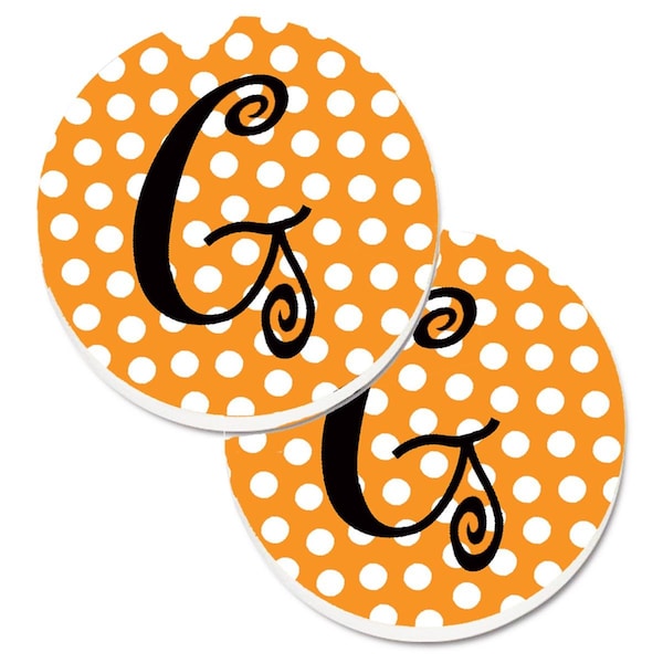 Monogram Initial G Orange Polkadots Cup Holder Car Coaster, PK2