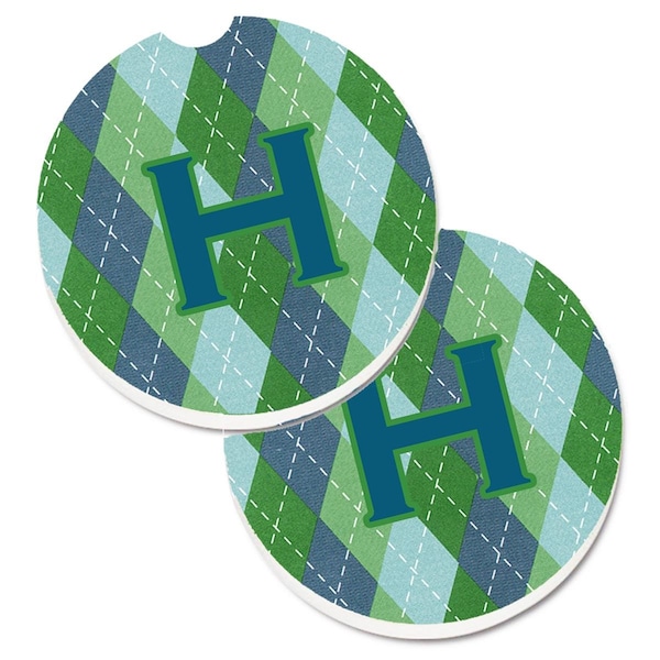 Monogram Initial H Blue Argoyle Set of 2 Cup Holder Car Coaster