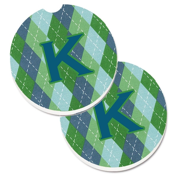 Monogram Initial K Blue Argoyle Cup Holder Car Coaster, PK2