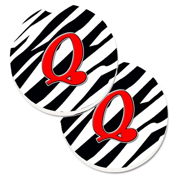 Monogram Initial Q Zebra Red Set of 2 Cup Holder Car Coaster