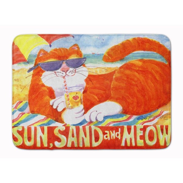 Orange Tabby at the beach Machine Washable Memory Foam Mat