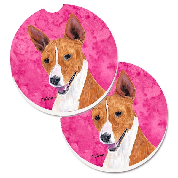 Pink Basenji Set of 2 Cup Holder Car Coaster