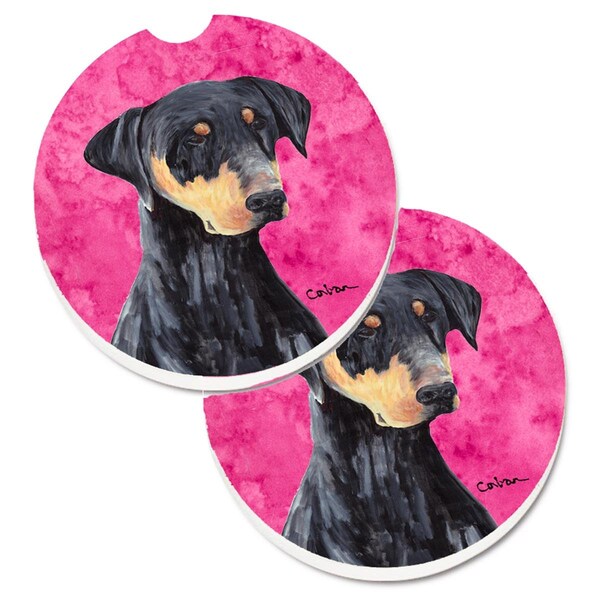 Pink Doberman Set of 2 Cup Holder Car Coaster
