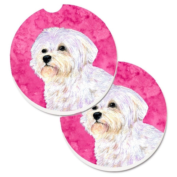Pink Maltese Set of 2 Cup Holder Car Coaster