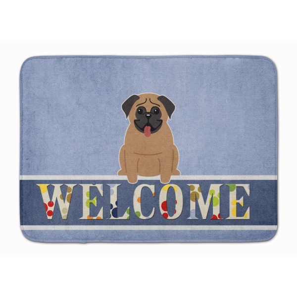 Pug Brown Welcome Machine Washable Memory Foam Mat