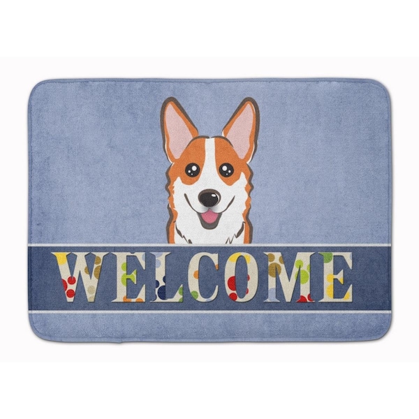 Red Corgi Welcome Machine Washable Memory Foam Mat