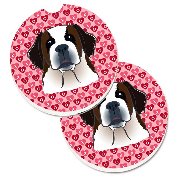 Saint Bernard Hearts Cup Holder Car Coasters - Set of 2