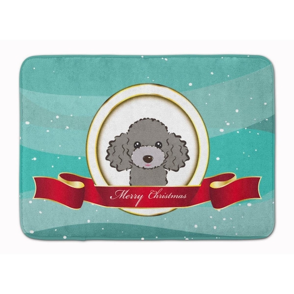 Silver and Grey Poodle Merry Christmas Machine Washable Memory Foam Mat