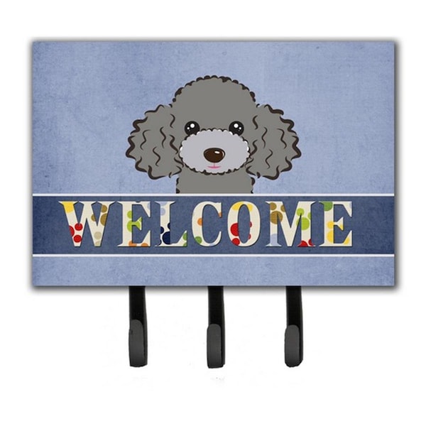 Silver Gray Poodle Welcome Leash and Key Holder