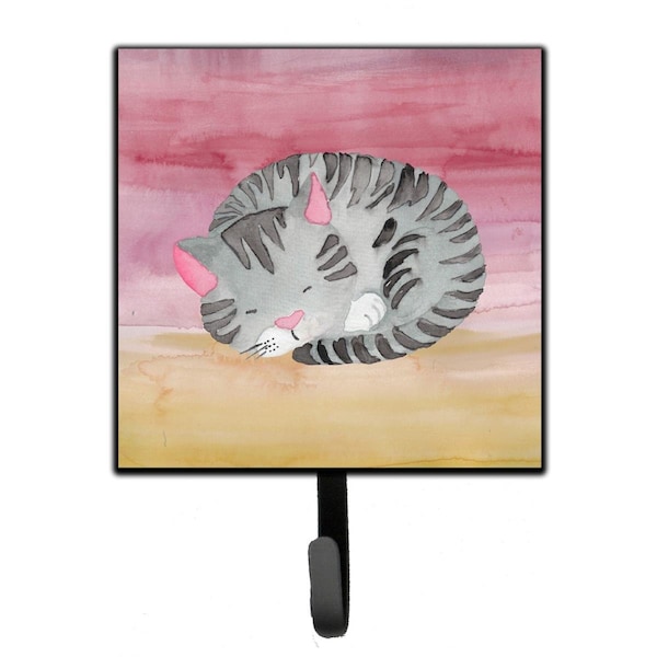 Sleeping Grey Cat Watercolor Leash or Key Holder