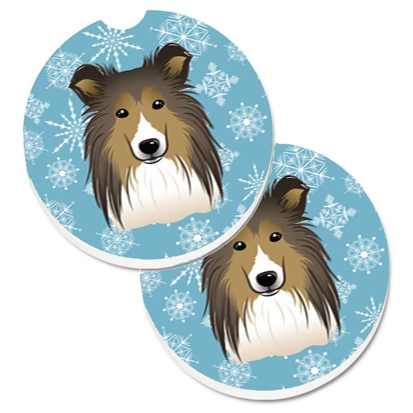Snowflake Sheltie Set of 2 Cup Holder Car Coaster
