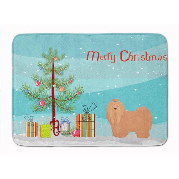 Tan Lhasa Apso Christmas Tree Machine Washable Memory Foam Mat