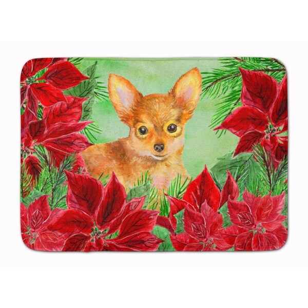 Toy Terrier Poinsettas Machine Washable Memory Foam Mat