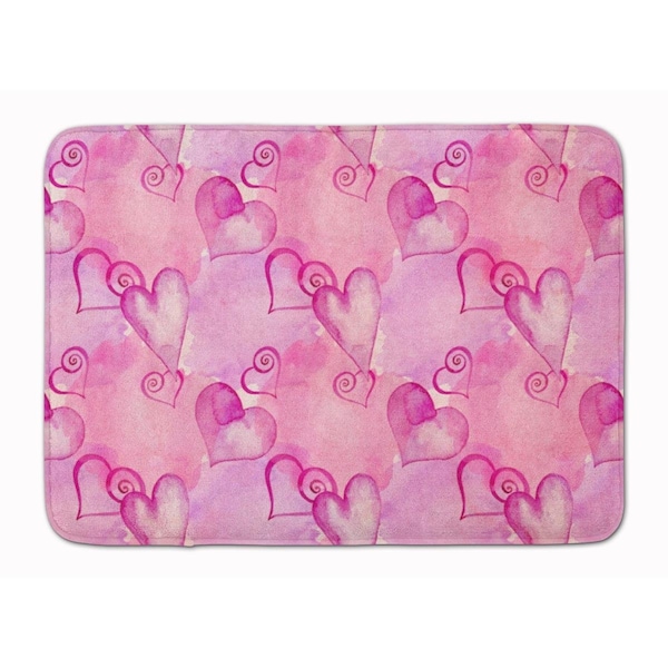 Watercolor Hot Pink Hearts Machine Washable Memory Foam Mat
