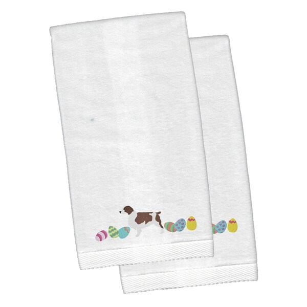 Welsh Springer Spaniel Easter White Embroidered Plush Hand Towel, 2PK