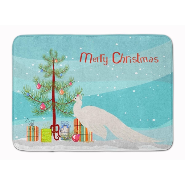 White Peacock Peafowl Christmas Machine Washable Memory Foam Mat