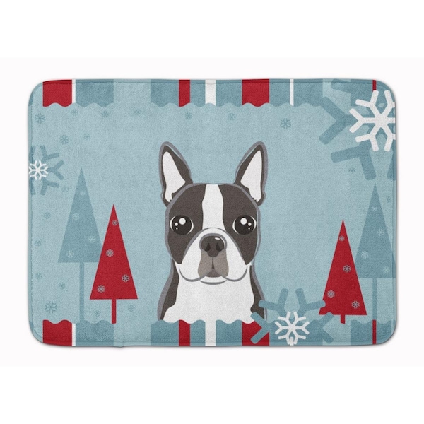 Winter Holiday Boston Terrier Machine Washable Memory Foam Mat