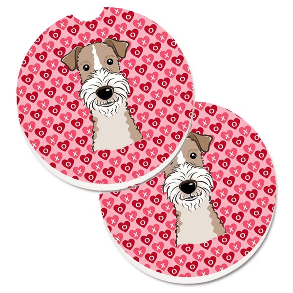 Wire Haired Fox Terrier Hearts Cup Holder Car Coasters - Set of 2