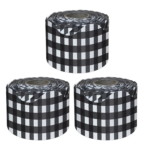 Black Gingham Rolled Scalloped Borders, 65 Feet Per Roll, 3PK