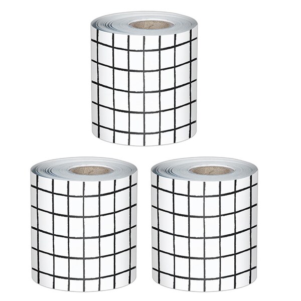 Happily Ever Elementary Black & White Grid Rolled Bulletin Board Borders, 65 Feet Per Roll, 3PK