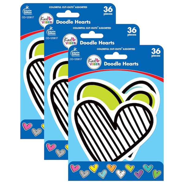 Kind Vibes Doodle Hearts Cut-Outs, 36-Piece Set, 3PK