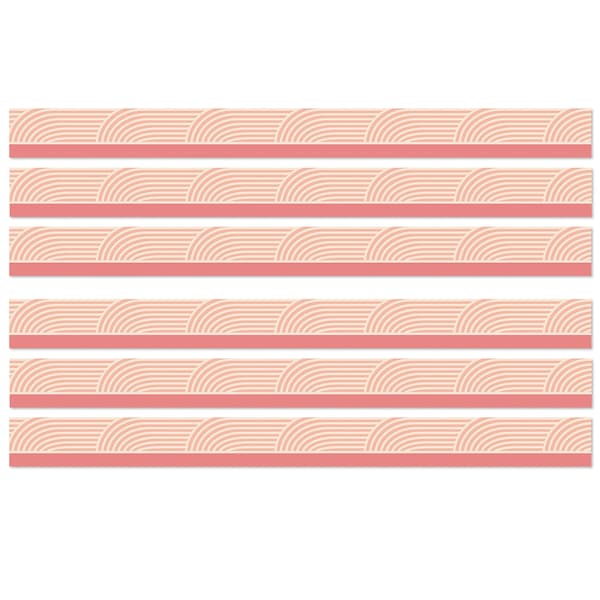 Bring a warm, calming vibe to any display with the Carson Dellosa True To You Wavy Coral Bulletin Board Borders! Each 36-foot bulletin border pack features 12, 3' x 3'' strips of neutral classroom borders with a stylish, coral wave design to add the perfect finishing touch to natural classroom decor. Sold as 6 packs for a total of 72 strips 216 feet.