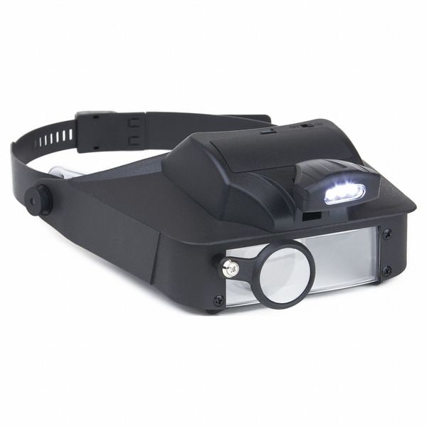 Head-Worn Magnifier, Power 2x, 3x, 5x, 6x, Diopter 2x/3x/5x/6x Power, Focal Distance 2.0 in, Lens Diameter 26 mm, 88 mm, Battery Size 3 AAA (Not Included), Case Not Applicable, Features LED Light Fully Adjustable, Hands Free, For Use With Hands-free operation; hobby, craft, & detail work applicatioins, Includes Adjustable Head Strap, Lens Acrylic, Overall Length 10.4 in