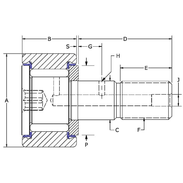 62 mm, Metric Needle Cam Follower, Sealed, Hex, Cylindrical