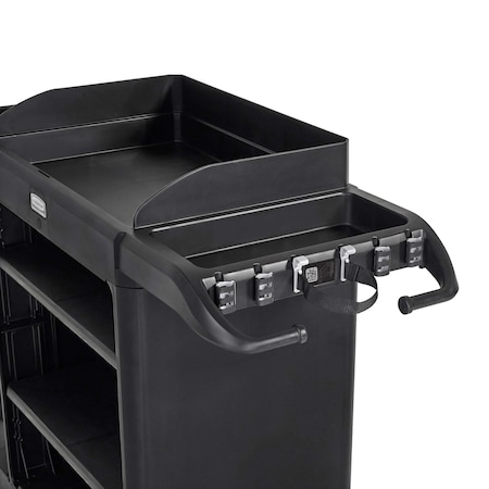 Hi-Security Housekeeping Cart, 2-Shelf, 22w x 51.75d x 53.5h, Blk/Slvr
