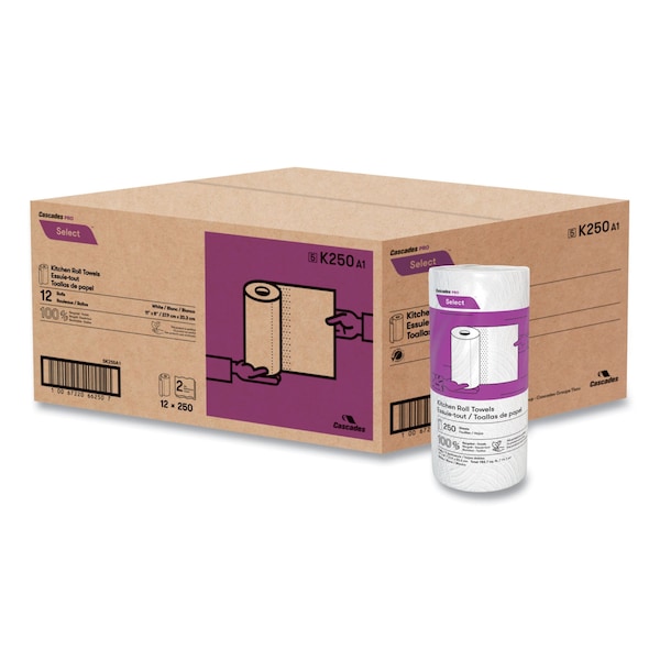 Select Perforated Roll Paper Towels, 2 Ply, 250 Sheets, 167 ft, White