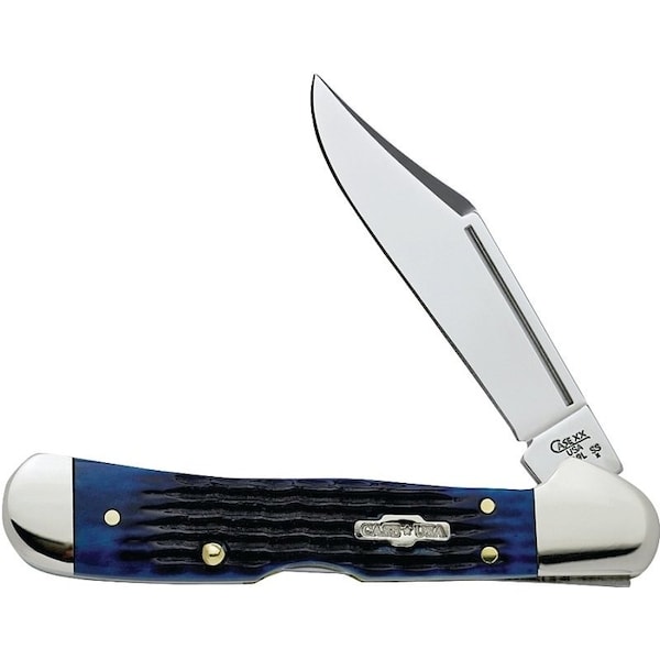 Blue bone knives have stainless steel blades that get the job done and their classic blue handles look even better the longer you carry them. The CopperLock knife is an original design by W.R. CASE that combines elements from the Trapper and Copperhead to make a new lockback knife. The mini CopperLock is smaller than the traditional CopperLock without compromising durability. With a fully locking clip blade, this mini CopperLock knife has the cutting power of a lockback, with the look and feel of a traditional CASE pocket knife. The clip blade is commonly used as a multi-purpose blade that makes this pocket knife great for everyday use. This knife is constructed with CASE Tru-Sharp stainless steel which is a special high-carbon steel that helps the blades hold an edge longer than conventional steel. It also offers extraordinary blade strength and corrosion resistance.