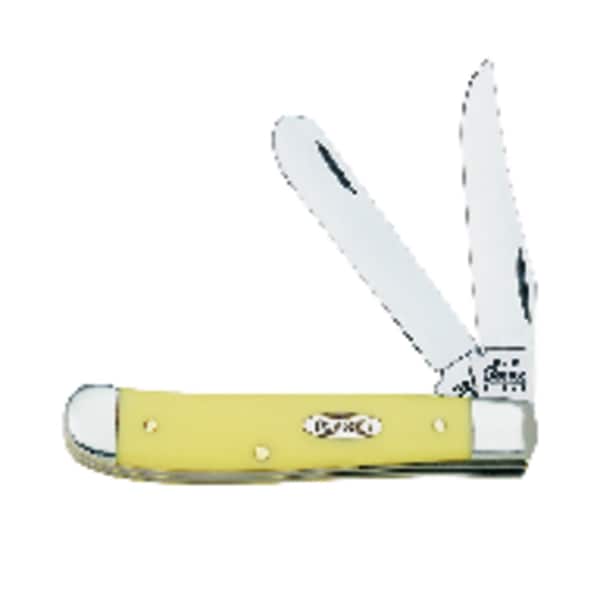 The Case Yellow Synthetic handle Mini Trapper pocket knife has 2 Chrome Vanadium (CV). The distinctive yellow handle brightens this family while maintaining its toughness, making it one of the most beloved in the Case line.