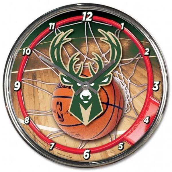 Milwaukee Bucks Clock Round Wall Style Chrome Special Order (Discontinued)