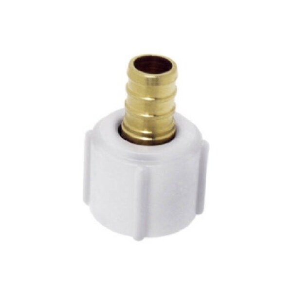 12 Lead Free Brass Barb Insert x 12 Female Pipe Thread Swivel Plastic Nut Faucet Adapter, For Connecting 12 Cross Link Polyethylene Pex Tubing To 12 Male Iron Pipe Thread Faucet Shank, Secure Barb End Of Fitting To Pex Pipe With TV 608933 Cinch Clamps TV 608743 Cinch Tool, Or Copper Crimp Rings Crimp Tool, Immediately Testable To Well Over 100 PSI, Meets The New NSFANSI Standard 142009 ASTM F 18079SI Standard For Products Intended For The Transport Of Potable Water, ANSINSF Standard 61 Annex G For Lead Free Compliance The Wetted Surface Of This Product Contacted By Consumable Water Contains Less Than 025 Of Lead By Weight To Meet AB1953 California VT S152 Vermont Low Lead Restrictions