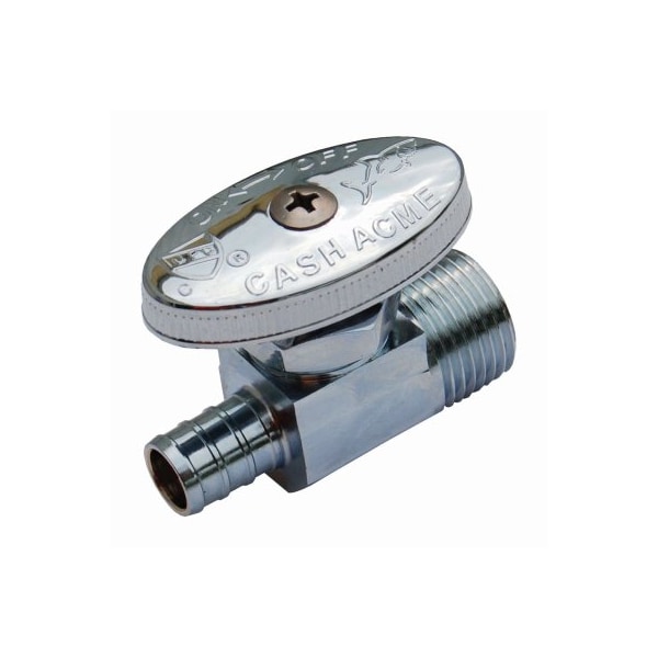 12 Barb Insert x 12 Male Pipe Thread, Chrome Plated Brass, Lead Free, Straight Stop, 14 Turn, Lever Handle, Use With TV 608933 Cinch Clamps, Need Cinch Tool TV 608743, Or Copper Crimp Rings On Cross Link Polyethylene Pex Tubing, After Crimping You Can Test Each Fitting To Well Over 100 PSI, NSF Listed Brass Inserts, ASTM F876, ASTM F877 To SDR9 Dimensional Standards, NSF 14 61 For Use In Potable Water Systems, CSA B1375 Standards, NSF CLR Certified For Use In Hot Water Systems Where Chlorinated 140 Degrees Fahrenheit Hot Water Can Be Constantly ReCirculated, The Wetted Surface Of This Product Contacted By Consumable Water Contains Less Than 14 Of 1 Percent, 025, Of Lead By Weight, Meets AB1953 California VT S152 Vermont Low Lead Restrictions