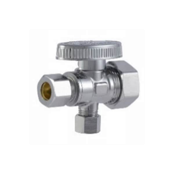 SharkBite brass 12in compression x 14in OD compression quarter turn dual fullport brass ball outlet valve SharkBite quarter turn ball valves with compression connections are a secure way to provide water to ice makers, toilets and faucets Attach the valve to the pipe using the compression nut and ferrule, tightening with a wrench Then connect the supply line to the valve The quarter turn shut off provides an easy and maintenance free shut off for your fixtures Compatible with copper pipe