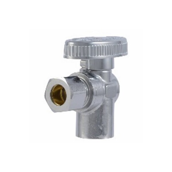 SharkBite brass 12in copper sweat x 38in OD compression quarter turn angle valve SharkBite quarter turn ball valves with copper sweat connections are a secure way to provide water to ice makers, toilets and faucets Solder the valve onto the pipe, then connect the supply line to the valve The quarter turn shut off provides an easy and maintenance free shut off for your fixtures Removable metal handle Compatible with copper pipe