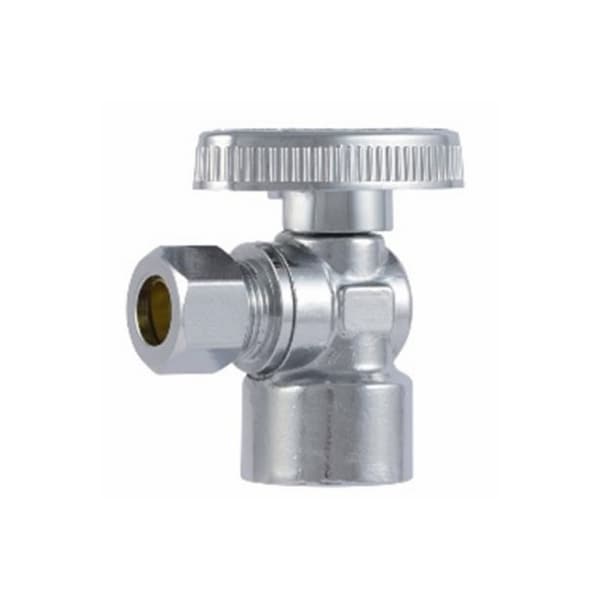 SharkBite 12in FIP x 38in OD compression quarter turn fullport brass ball angle valve SharkBite quarter turn ball valves with FIP female iron pipe connections are a secure way to provide water to ice makers, toilets and faucets Using a pipe thread sealant, thread the valve onto the pipe, then connect the supply line to the valve The quarter turn shut off provides an easy and maintenance free shut off for your fixtures Compatible with iron pipe