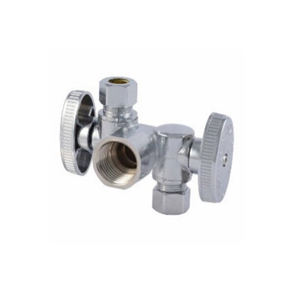 SharkBite12in FIP x 38in OD compression quarter turn dual shutoff fullport brass ball valve SharkBite quarter turn ball valves with FIP female iron pipe connections are a secure way to provide water to ice makers, toilets and faucets Using a pipe thread sealant, thread the valve onto the pipe, then connect the supply line to the valve The quarter turn shut off provides an easy and maintenance free shut off for your fixtures Compatible with iron pipe