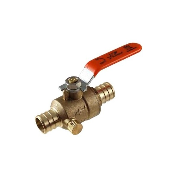 34 Brass Barb Insert x 34 Brass Barb Insert, Lead Free, Ball Valve, With Drain, 14 Turn, Lever Handle, For Use With Pex Tubing Connected With Stainless Steel Cinch Clamps Cinch Tool TV 608743, ASTM F876, ASTM F877 To SDR9 Dimensional Standards, NSF 14 61 For Use In Potable Water Systems, CSA B1375 Standards, NSF CLR Certified For Use In Hot Water Systems Where Chlorinated 140 Degrees Fahrenheit Hot Water Can Be Constantly ReCirculated, The Wetted Surface Of This Product Contacted By Consumable Water Contains Less Than 14 Of 1 Percent, 025, Of Lead By Weight, Meets AB1953 California VT S152 Vermont Low Lead Restrictions