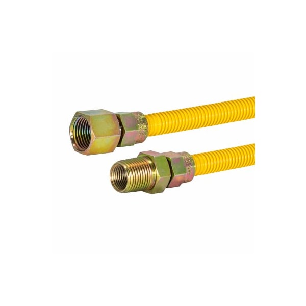Eastman YE 5/8OD-3/4FIP X 3/4MIP X 60 bag. 5/8-IN OD gas connector is designed to connect most major brands of gas ranges boilers and high-usage appliances to a shut-off valve. The connector is certified for use with most ranges and boilers with gas ratings up to 93200 BTUs. Epoxy Coating provides extra protection from corrosion chemical stains from common household products and UV rays and is approved for indoor/outdoor use. Includes 1 60-IN 5/8-IN OD epoxy-coated gas range connector 1 3/4-IN FIP fitting 1 3/4-IN MIP Tapped 1/2-IN FIP fitting.
