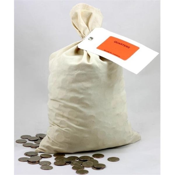 The Cassida Canvas 16" x 10" Coin Bag is made of sturdy fabric with double-stitched seams for heavy coin loads. It contains large capacity coin bag.
