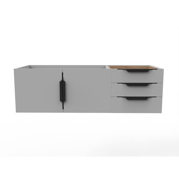 Alpine 48" Wall Mounted Gray Vanity Base with Black Handles