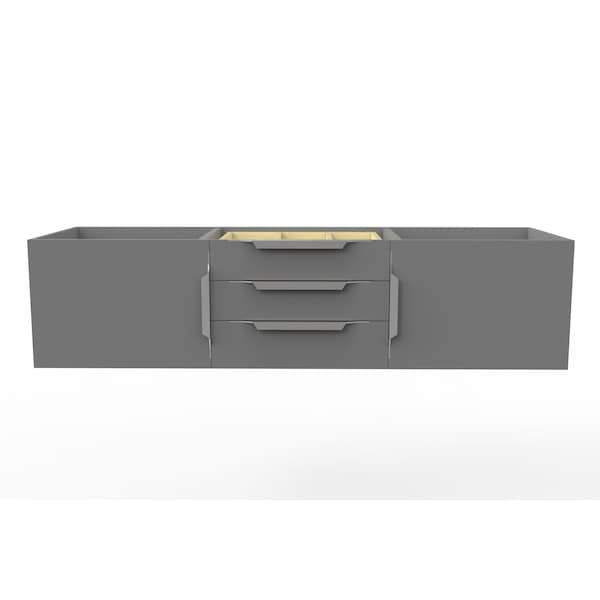 Alpine 60" Wall Mounted Gray Vanity Base with Brushed Nickel Handles