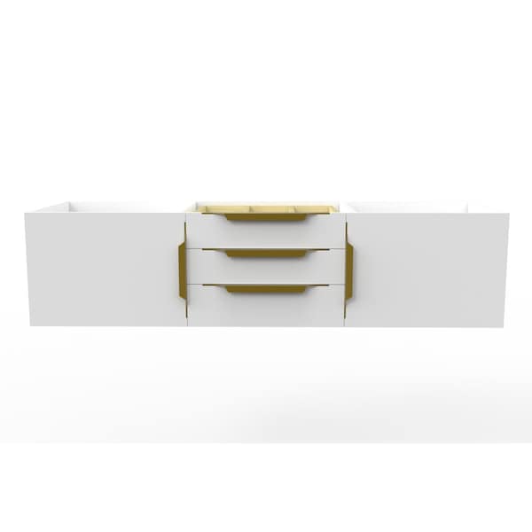 Alpine 60" Wall Mounted White Vanity Base with Gold Handles