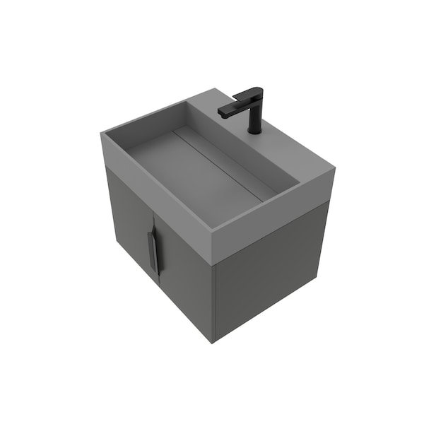This beautiful, modern, wall-mounted vanity set comes with a base made from high quality birch and plywood and a top made of durable solid surface a type of man-made stone. It's modern minimalist look is enhanced by its mounting to the wall which gives the appearance that the vanity is floating. The doors feature soft close hinges prevent slamming as well as sleek concealed pull handles to enhance the look without sacrificing function. The top features an elegant rectangular sink basin with a concealed drain to give the piece a sleek aesthetic and unparalleled sophistication compared to standard sink basins. This vanity will be a stunning addition to any bathroom renovation.Note: Faucet not included. Portions of this item are handcrafted and handfinished and may have slight variations in color, size, or finish compared to what is pictured. No two items will look exactly the same