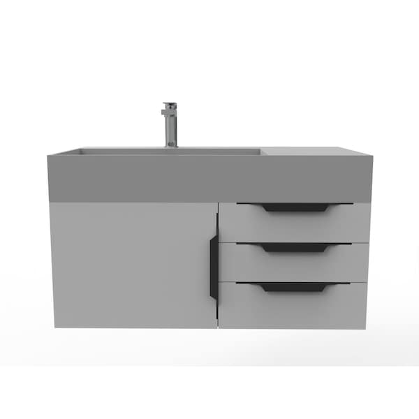Amazon 36" Wall Mounted Gray Vanity With Gray Top And Black Handles
