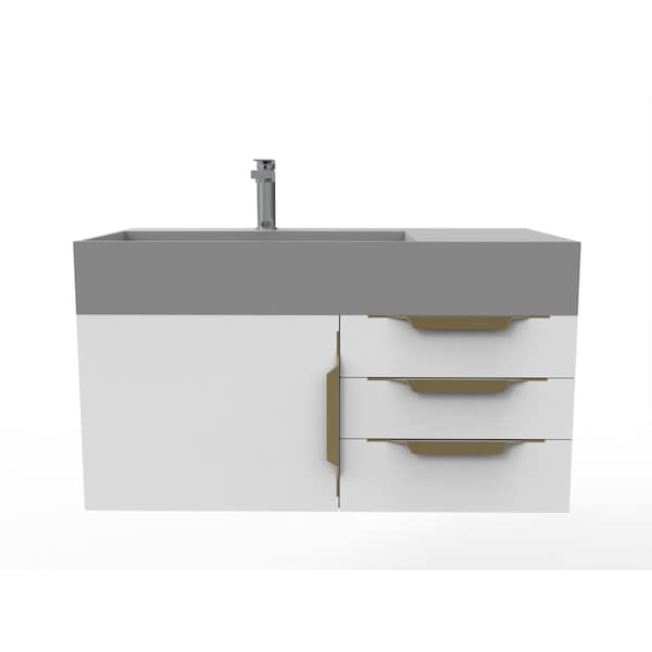 Amazon 36" Wall Mounted White Vanity With Gray Top And Gold Handles