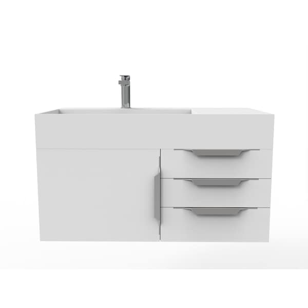 Amazon 36" Wall Mounted White Vanity With White Top And Chrome Handles