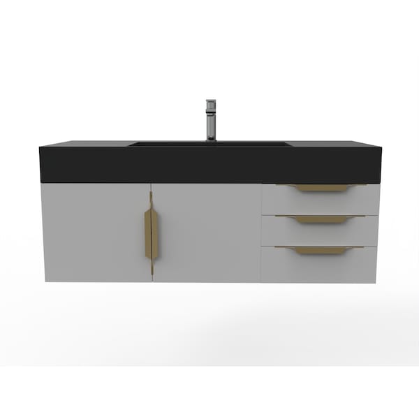 Amazon 48" Wall Mounted Gray Vanity With Black Top And Gold Handles